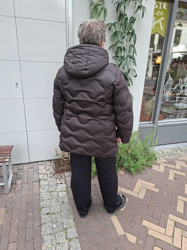 mooie doorgestikte jas met capuchon lengte 83 cm lichtgewicht