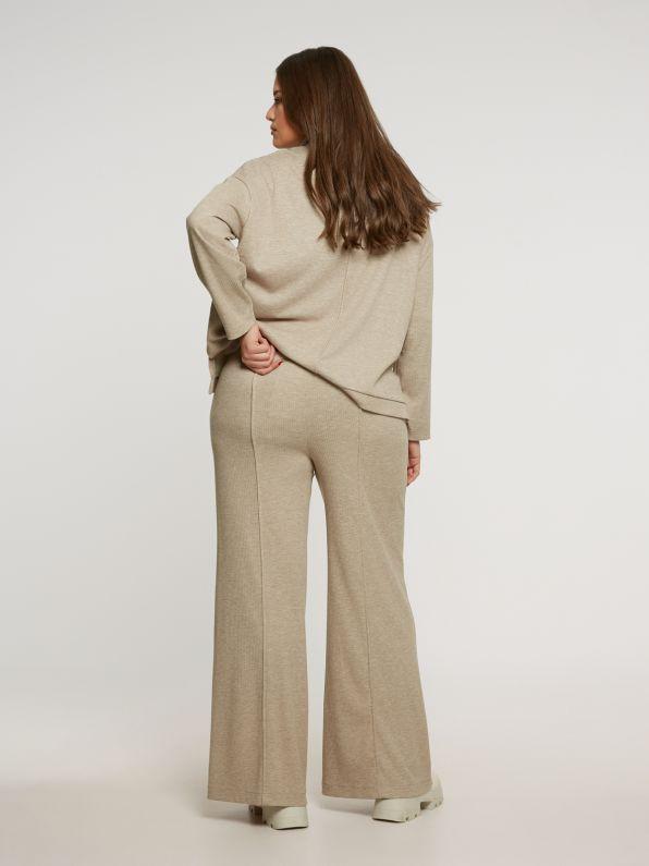 S= 42-44 M=46-48 L=50-52 58% polyester, 28% viscose, 11% polyamide, 3% elastan wijde pijp, naad over het voor- en achterbeen Fijne draagbare stof